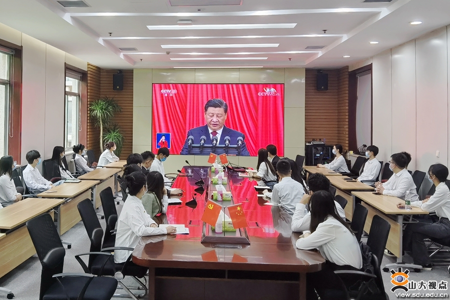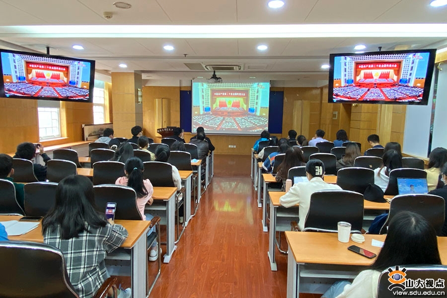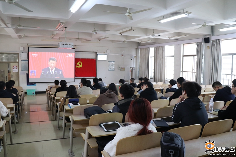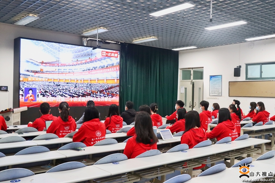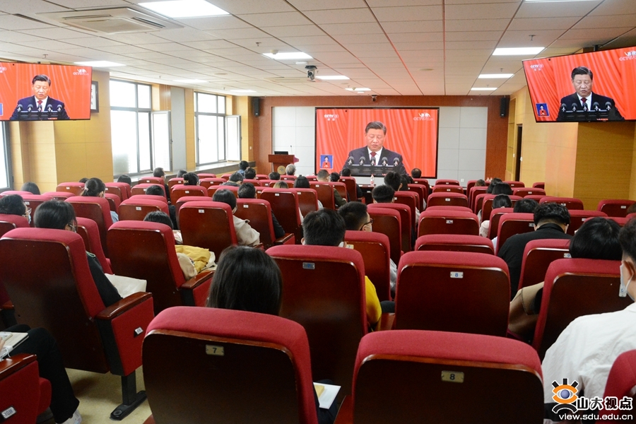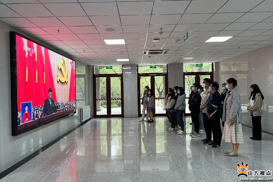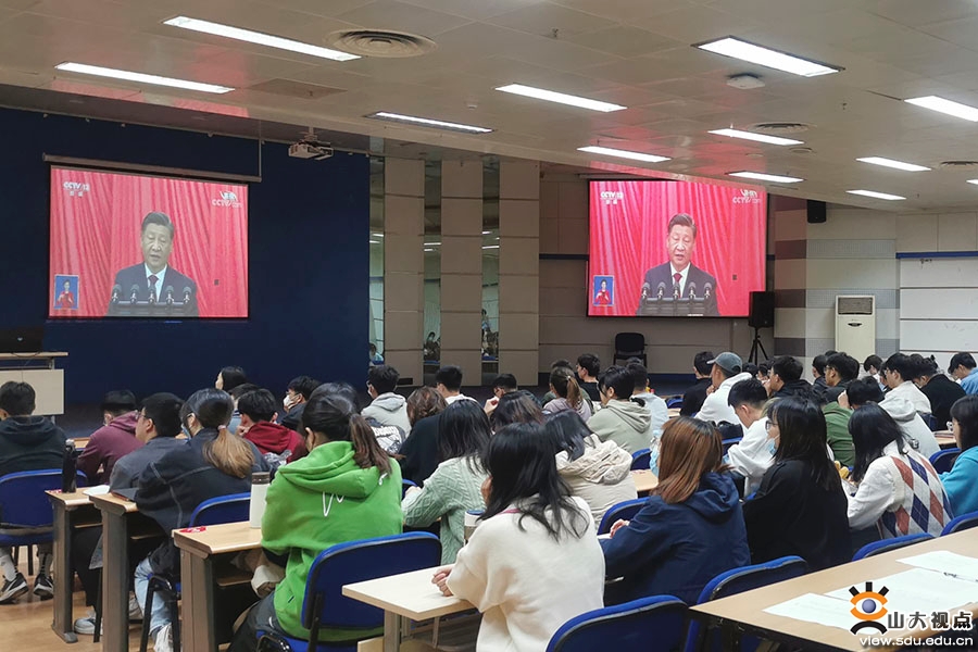 以更加饱满的激情、更加昂扬的姿态,扛起新使命、奋进新征程。各学院学生党员集体观看了开幕会直播。跟随习近平总书记的报告,同学们仔细聆听,用心铭记。通过观看开幕会,同学们了解了过去五年我国在经济、政治、文化、社会、生态文明等方面的发展状况,以及国家未来发展蓝图,纷纷表示,今后将不忘初心、牢记使命,努力学习,开拓创新,争做堪当民族复兴重任的时代新人。机械工程学院2020级本科生颜利华说:“党的二十大报告强调要建设制造强国,并对青年学生提出殷切期盼。作为一名机械类专业的大学生,我要站在新的历史节点上深刻学习领会党的二十大精神,常怀感恩之心、常抱奋勇之志,努力学好本领,为建设制造强国而努力奋斗!”山东大学党的二十大精神青年师生宣讲团成员、文学院2021级硕士研究生宋海涛说:“作为一名党团骨干,当听到习近平总书记说到‘守江山,守得是人民的心’时,联想到学生骨干要全心全意为同学服务,关注同学需求,解决实际困难,服务青年发展;作为一名文学院研究生,要坚持以人民为中心的创作导向,深入学习习近平总书记给《文史哲》编辑部重要回信精神,讲好中国故事,传播好中国声音,推动中华文化走向世界。”临床医学院2019级本科生苑永楷说:“开幕会上,习近平总书记指出,坚持推进健康中国建设,把保障人民健康放在优先发展的战略位置,增进人民福祉,提高人民生活品质。作为未来将奔赴到医疗卫生行业的各个岗位、成为居民生命健康的保障者与守护者的医学生,我们感到重任在肩,前景光明。时代在召唤,青年学子生逢其时,承担着推进民族复兴伟业的光荣使命。而我们齐鲁医学学子也将无惧医海无涯,千帆竞渡,奋楫争流,努力成长为‘仁心仁术’的精诚医者。”今天是齐鲁交通学院2019级研究生闫邵航的生日,观看开幕会后,他说:“能在如此特殊、举国同庆的日子度过生日,我感到十分荣幸。观看党的二十大开幕会也让我深刻领会到了党近年来的卓越成就。习近平总书记表示,完成脱贫攻坚任务,全面建成小康社会是十年内具有重大历史意义的三件大事之一,我也曾有幸参加过中国青年志愿者扶贫接力计划研究生支教团,前往新疆伊犁进行为期一年的支教,积极响应国家西部大开发战略,坚持教育强国战略,坚定立德树人根本任务,将身为党员、身为青年、身为教师的责任担当融入基层实践中去。回到山大,我也将继续不忘初心,踔厉奋发,将个人梦想融入到中国梦中,用青春力量助力中华民族伟大复兴,为实现第二个百年奋斗目标而努力拼搏!”护理与康复学院2020级本科生韩雨萱说,很荣幸能在党的二十大胜利召开之际,成为山东大学党的二十大精神师生宣讲团中的一员,并参与到本次集体收听收看当中。作为一名护康学子、宣讲团成员,我深刻意识到作为青年一辈的我们应当奋发有为,勇立潮头担重任,从自身出发踏实学习会议精神,更要以山大学子之力积极推动会议精神不断在全社会传递。