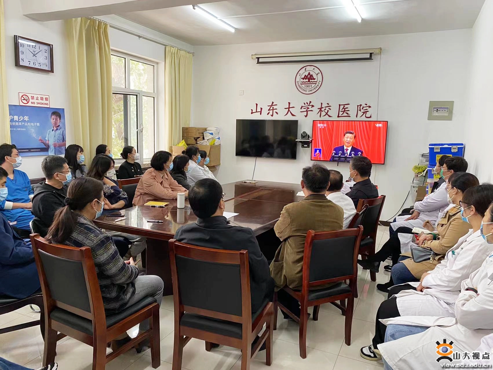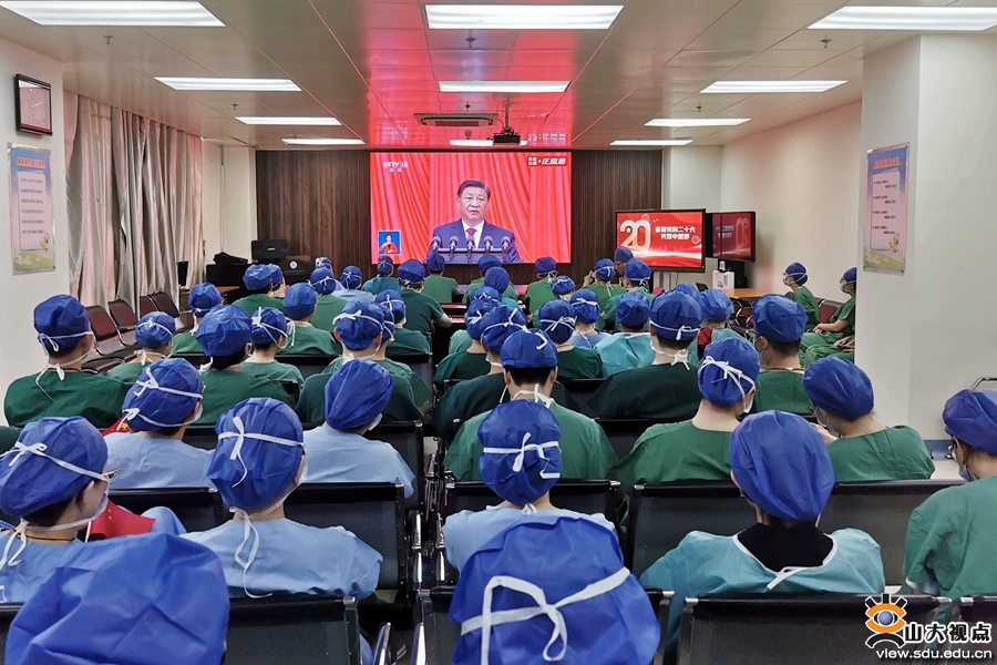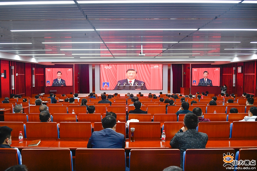 [本站讯]10月16日上午10时,中国共产党第二十次全国代表大会在北京人民大会堂隆重开幕,习近平代表第十九届中央委员会向大会作报告。山东大学师生医务员工通过电视、网络、广播等各种方式,认真收听收看党的二十大开幕会。在报告厅、教室、会议室、科研现场、宿舍……师生医务员工观看直播后,心潮澎湃,精神振奋,对党和国家过去五年的工作和新时代十年的伟大变革、伟大成就感到震撼,对全面建设社会主义现代化国家充满期冀,对实现中华民族伟大复兴充满信心,表示将以党的二十大精神为指引,凝聚共识,汇聚力量,画出最大同心圆,推动学校事业发展,为实现中华民族伟大复兴的中国梦作出积极贡献。