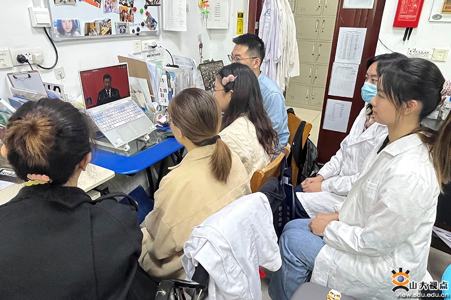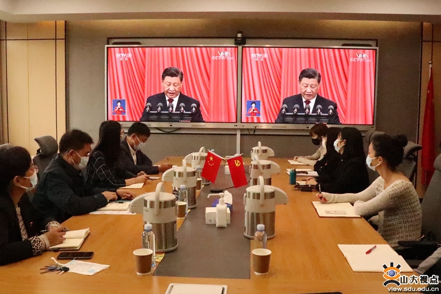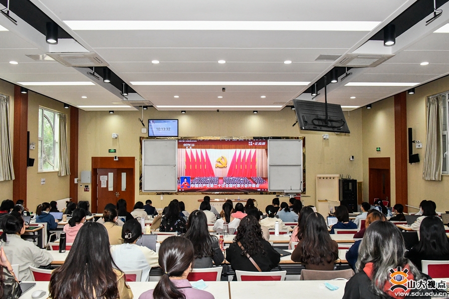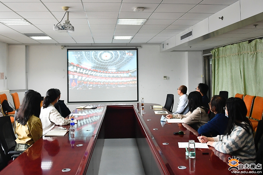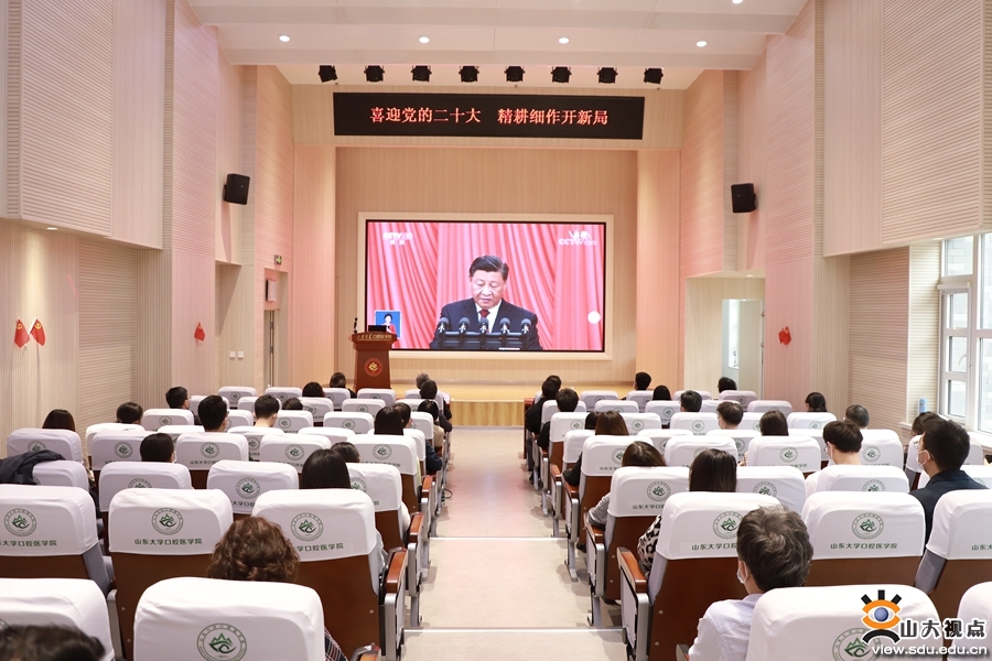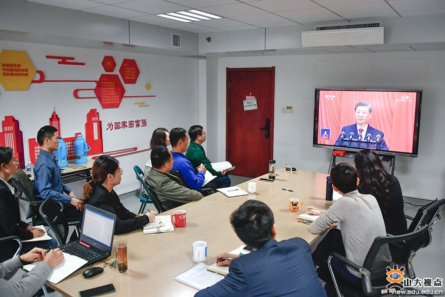 各教学科研单位也组织教职工认真聆听报告,深刻领会大会精神,并结合实际工作谈了观点、看法。《文史哲》编辑部刘培教授表示,习近平总书记在党的二十大报告中特别强调要推动中华优秀传统文化的创造性转化、创新性发展。对我们人文研究者来说,就是要积极参与到复兴优秀传统文化的伟大事业当中去。具体到《文史哲》杂志,就是要认真贯彻落实习近平总书记的重要回信精神,积极主动地介入当下的学术界,努力在学术创新中发挥风向标的作用,引领学界用中国话语讲述中国故事,用中国理论解读中国道路。口腔医学院(口腔医院)党委副书记柳松说:“作为一名党务干部,下一步的重点任务就是精心策划、扎实组织学习宣传贯彻党的二十大精神各项活动,推动广大党员干部和师生医务员工掀起学习宣传党的二十大精神的热潮,让党的二十大精神在学院(医院)落地生根,在师生中入脑入心,在医教研协同发展中见行见效,以党的二十大精神为指导在新征程中实现一流口腔医学院(口腔医院)建设取得新的更大成绩,为全面建设社会主义现代化国家、全面推进中华民族伟大复兴作出新的更大贡献。”外国语学院辅导员朱蕾说:“听完整个报告,我精神振奋、激动不已。砥砺奋进的十年,我们一路披荆斩棘、凯歌前行,今天的中国人民从来没有过如此的自信、自立、自强,中国人的志气、骨气、底气前所未有,这让我深深感受到以习近平同志为核心的党中央坚强领导下建功新时代、奋进新征程的坚定信念。我们相信,团结就是力量,奋斗开创未来,以习近平同志为核心的党中央将带领全国人民,在新的赶考路上继续创造举世瞩目的新奇迹。”经济学院辅导员吕宁表示,在今后的工作中,将全面贯彻落实习近平新时代中国特色社会主义思想和党的二十大精神,弘扬伟大建党精神,全面落实立德树人根本任务,坚守为党育人初心,勇担为国育贤使命,把握好学生成长成才规律和思想政治工作规律,赓续传统、不懈奋斗,为奋力谱写全面建设社会主义现代化国家新篇章贡献力量。齐鲁医学院学科与发展规划办公室李泉谈到,习近平总书记在党的二十大报告中指出,必须坚持科技是第一生产力、人才是第一资源、创新是第一动力,深入实施科教兴国战略、人才强国战略、创新驱动发展战略。作为临床医学一流学科国家级赛道的重要创新组成力量,山东大学齐鲁医学更应坚定引领学科领域发展的志气、骨气和底气,知难而进、迎难而上,服务国家战略需求,在新百年征程中实现齐鲁医学品牌光大辉煌。药学院党委书记王秋生表示,将认真组织学习宣传贯彻党的二十大精神,团结带领全体党员干部、师生员工,在立德树人、高水平科技自立自强、护佑人民健康和青年工作等方面对标党中央对“国家队”和国家战略科技力量的总要求,以时不我待的紧迫感提升学科建设水平和人才培养质量,勇担时代责任,踔厉奋发,勇毅前行,走好新时代新的长征路。软件学院机关党支部孙玮茄说,作为一名基层党务工作人员,要牢记党的嘱托,以“不忘来时路”的初心、“把事情办好”的决心、“始终保持同人民群众血肉联系”的真心,立足本职岗位,扎扎实实做好服务保障工作,发挥好党支部的战斗堡垒作用,为特色化示范性软件学院建设保驾护航,为学校“双一流”建设贡献力量。