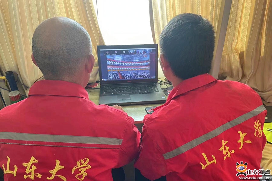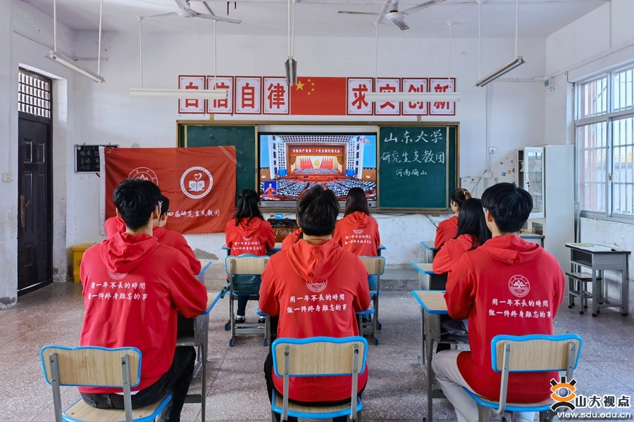 研究生支教团的同学们分别在学校和支教地收听收看开幕会,并认真交流感想体会。经济学院2019级本科生,第25届研究生支教团成员张少州表示,作为新一代“山岩人”,我会认真领会党的二十大精神,牢记习近平总书记的殷切嘱托,把青春播撒在西部教育发展的伟大征程上,努力成为党和人民满意的“四有”好老师,为培养德智体美劳全面发展的社会主义建设者和接班人贡献力量,书写无愧于人民,无愧于时代的青春篇章。山东大学第24届研究生支教团临时团支部副书记、河南确山队队长张天雨在支教地老臧庄小学观看了大会盛况。他说:“习近平总书记在大会上作的报告让我倍感振奋,深感责任重大。研究生支教团将全面贯彻党的教育方针,落实立德树人根本任务,在支教地为人民教育事业和推进乡村振兴战略贡献山大力量,在全面建成社会主义现代化强国、实现第二个百年奋斗目标的新征程中谱写华彩篇章。”