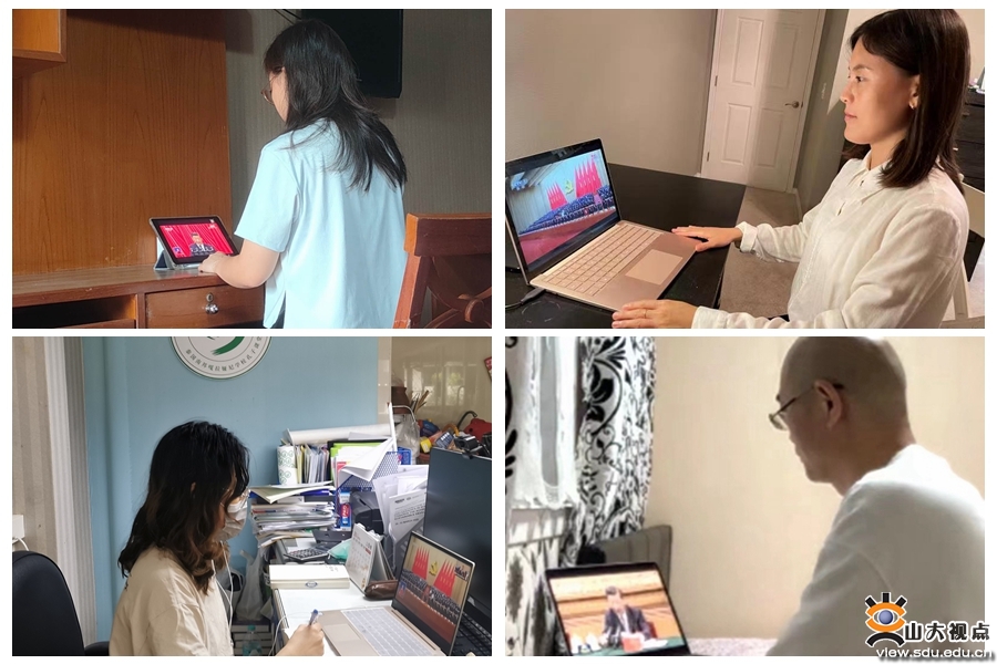 在国外访学交流的师生们也密切关注党的二十大胜利召开,积极观看开幕会直播,并表示将来掌握过硬本领,回国后更好地服务国家、服务社会。赴芬兰赫尔辛基大学公派访问学者、山东大学第二医院医生肖士鹏、相玉娟在实验室观看开幕式后表示,“祖国的需要就是我们学习前进的方向”,我们受到国家和医院的资助和信任,要把国内临床遇到的问题与国际上最新的科研进展结合起来,为祖国医学事业的进步添砖加瓦。在新的历史机遇下,我们青年人身上有劲,眼里有光,脑子里有信念,努力把自己手里的活干好,服务百姓健康,立志为新时代谱写新华章。齐鲁医院消化内科副主任医师李真说:“怀着无比激动的心情,我在美国佛罗里达杰克逊维尔实时收看了党的二十大开幕会。作为一名党龄17年的老党员,在异国他乡聆听习近平总书记的大会报告,更能感受到祖国繁荣富强赋予每一位在全世界各个角落认真奋斗的中国人的民族自信和强大动力。在国家留学基金委‘青年骨干师资’项目的资助下,我作为一名‘山大人’,一名党培养的新时代青年,有责任、有义务、有能力在当前国际局势纷繁复杂的时代,坚定不移地拥护党的领导,牢记习近平总书记对全体党员的殷切期望,以维护中华民族和中国人民的利益为己任,在医学探索道路上奋勇直前,为人民的健康贡献自己最大的力量。”国际教育学院2021级硕士研究生钟一竹说:“我作为一名在泰国南邦嘎拉娅尼孔子课堂任教的国际中文志愿者于线上观看了党的二十大开幕会。习近平总书记强调,要推进文化自信自强、铸就社会主义文化新辉煌,繁荣发展文化事业和文化产业,增强中华文明传播力影响力。作为一名目前在海外任教的国际中文教师志愿者,在进入全面建设社会主义现代化国家、向第二个百年奋斗目标进军的新征程上,我会一心一意跟党走,立足语言文化助力国际交往,架起友谊桥梁,为构建人类命运共同体尽一份力。”当地时间凌晨三点,山东大学艺术学院高迎刚教授在英国利兹大学收看了开幕会。他说:“作为国家公派留学的山东大学教师,我们努力克服一切困难,收听收看这次大会的实况转播,认真学习会议精神、感受现场氛围,提升精神境界,增强为祖国、为人民努力工作的认识能力和工作能力。作为一名中国共产党党员,一名因为工作需要暂居海外的中国人,一名永远心怀祖国的山大人,不论何年何月、不论身居何处,我们都自觉将个人生活与祖国命运紧密相连,甘愿为祖国的繁荣昌盛、为人民的幸福安康付出一切。”在英国交流学习的新闻传播学院2021级硕士研究生国璐璐表示,身在异乡,心系祖国。观看了党的二十大开幕会,我感慨万千。作为新时代的青年,我们今后的成长轨迹也必将和全面建成社会主义现代化强国之路相契合,将成为把我国建成富强民主文明和谐美丽的社会主义现代化强国的主力军。而作为新闻传播学院的一名硕士研究生,作为传播中国声音的一份子,我也一定要坚定“四个自信”,将不断提升国家文化软实力和中华文化影响力作为自己的使命,实现习近平总书记所说的“增强中华文明传播力影响力,坚守中华文化立场,讲好中国故事、传播好中国声音,展现可信、可爱、可敬的中国形象,推动中华文化更好走向世界”的目标。