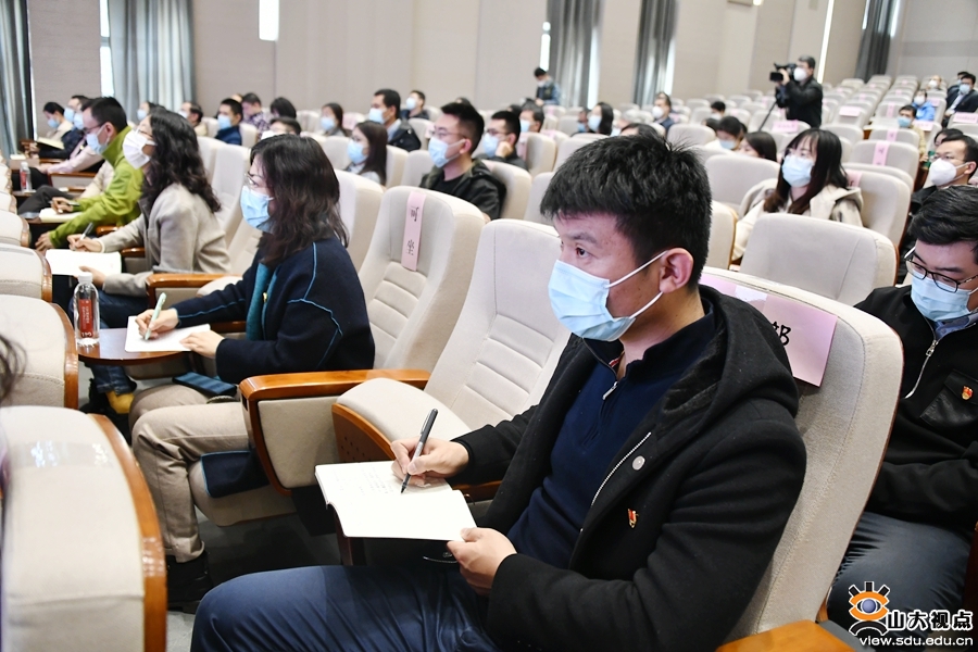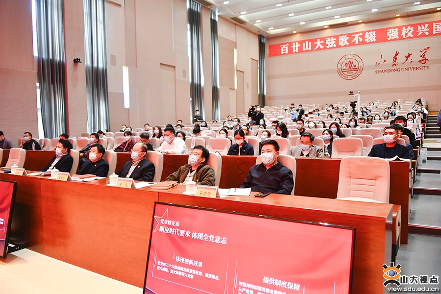 宣讲采取线上线下相结合的方式,威海校区、青岛校区、齐鲁医学院设立视频分会场。校领导,威海校区、青岛校区、齐鲁医学院领导班子成员,各职能部门负责人和工作人员、教师代表、学生代表等聆听宣讲报告。